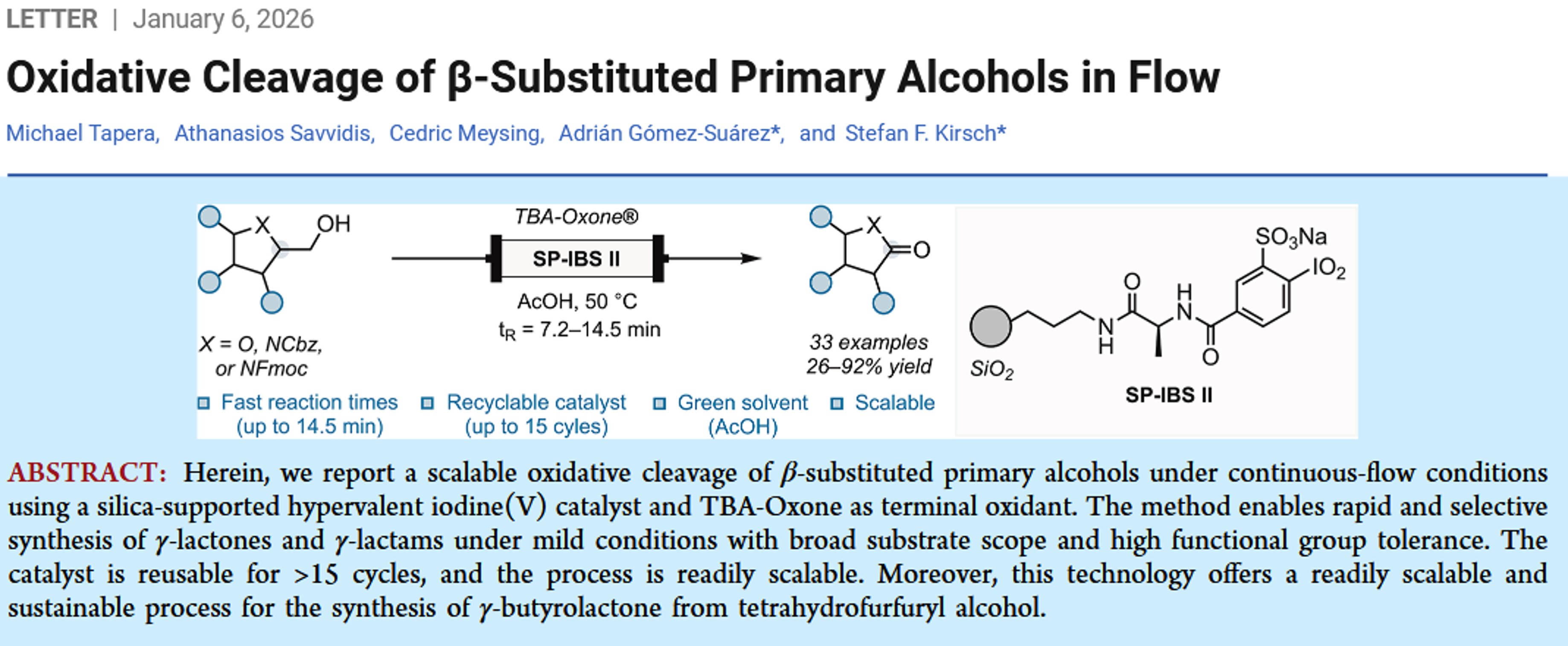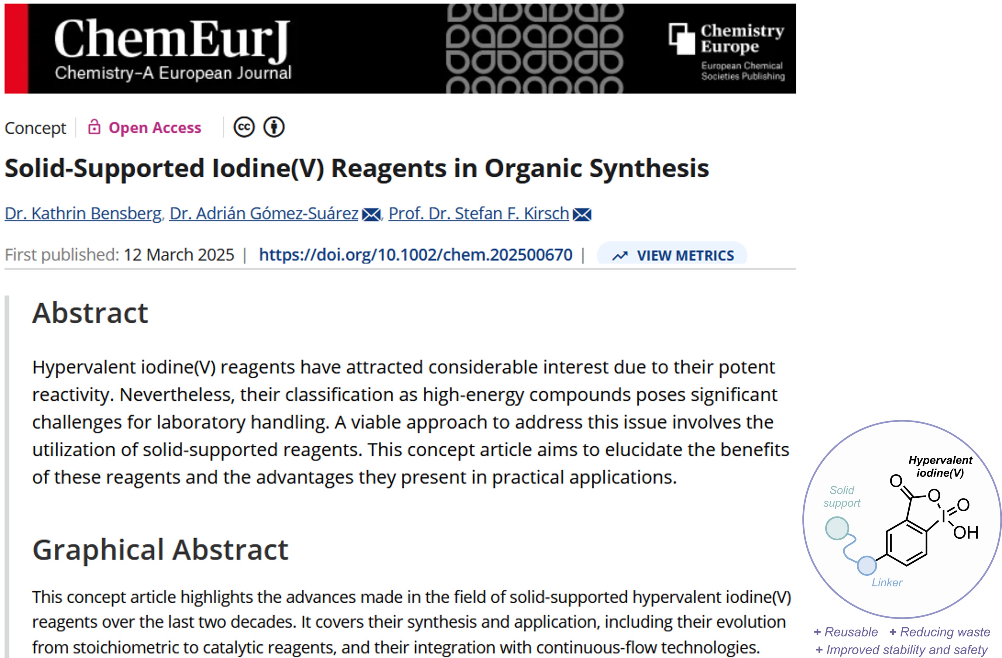 F. Ballaschk and S. F. Kirsch, "Oxidations with Iodine(V) Compounds – From Stoichiometric Compounds to Catalysts" in Iodine Catalysis in Organic Synthesis,Ishihara, Kazuaki and Muniz, Kilian, Eds. Wiley, 2022, pp. 299–334.