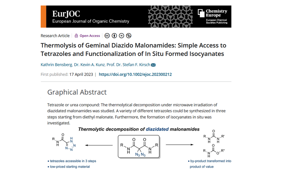 Kathrin presented her research "Thermolysis of geminal diazido malonamides: Access to tetrazoles and urea derivatives" in form of a poster at the 17th Belgian Organic Synthesis Symposium in July 2022.