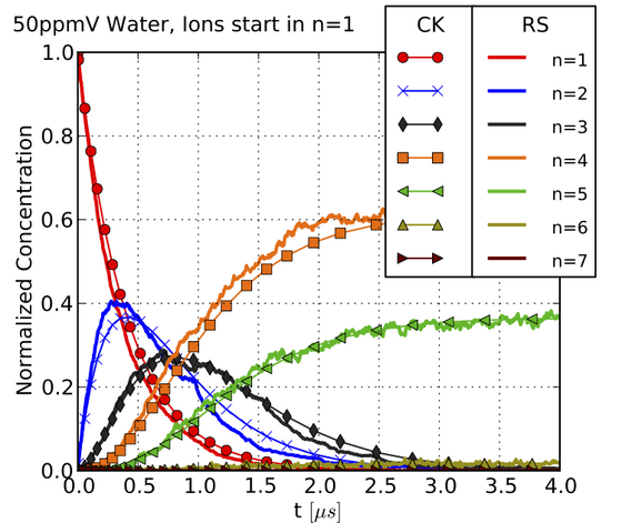 Kinetische Modellierungen werden in der Physikalischen und Theoretischen Chemie unter anderem für die Aufklärung von Reaktionsmechanismen von Ionen-Molekülreaktionen, wie sie in Atmosphärendruck-Ionenquellen auftreten, angewendet. Der zeitliche Verlauf der Reaktionen, die an den Ionentransformationsprozessen beteiligt sind, wird typischerweise als Differentialgleichungssystem beschrieben. Für die Lösung eines solchen Gleichungssystems müssen lediglich die Reaktionsgeschwindigkeitskonstanten der beteiligten Reaktionen und die Konzentrationen der Ausgangsstoffe bekannt sein. Für eine bestimmte Reaktionszeit werden dann die Konzentrationen der Reaktionsprodukte berechnet. Diese werden anschließend mit den im Massenspektrum erhaltenen Signalintensitäten verglichen, um so den vorgeschlagenen Reaktionsmechanismus bestätigen oder ausschließen zu können.