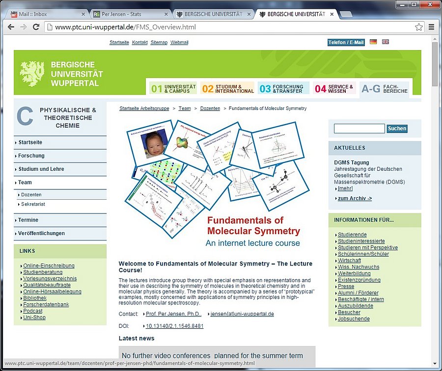 A new initiative is the Internet lecture course "Fundamentals of Molecular Symmetry - The lecture course". Click here for a description.